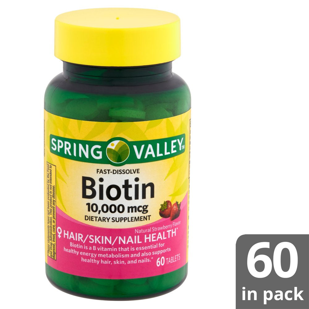 • Spring Valley Fast-Dissolve Biotin Dietary Supplement, 10,000 mcg, 60 Count