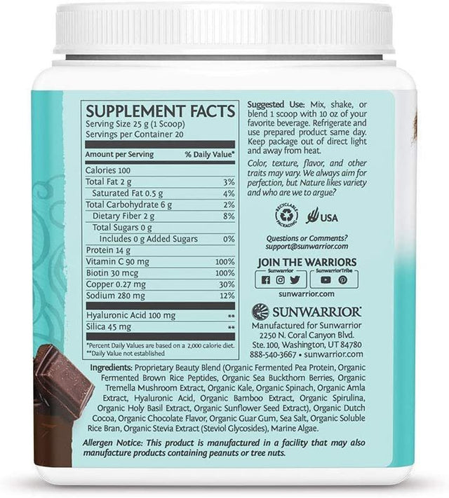 We understand that the earth gives us exactly what we need, and theres no need to modify that. Sunwarrior uses only organic & non-GMO ingredients when possible.