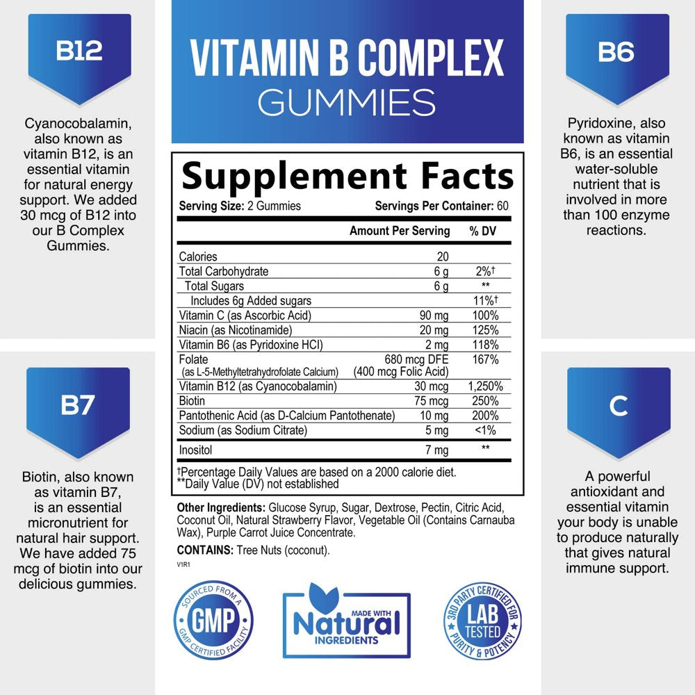 - Trusted Formula: Our Vitamin B Complex is formulated and manufactured following strict cGMP guidelines; Our B Complex Gummies are third party tested to assure the quality and purity of each batch