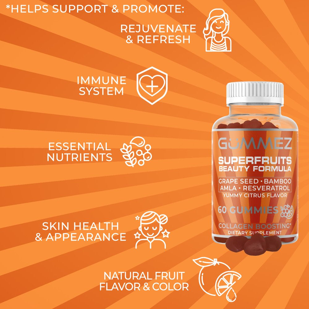 - Gummez Superfruit Gummies - Our collagen booster gummy was specifically chosen for the special role it plays in helping create the ideal vitamins to support a youthful look. Try them today!