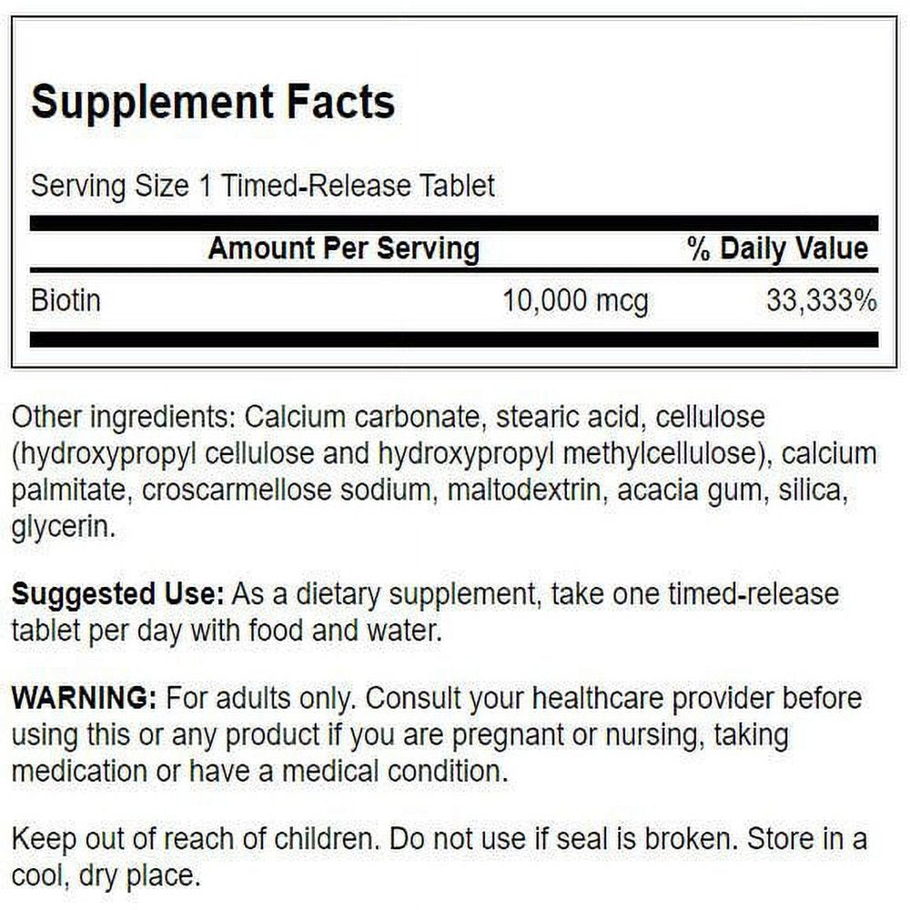 Swanson Biotin - Timed-Release 10,000 Mcg 60 Tablets - 1 Pack is backordered and will ship as soon as it is back in stock.
