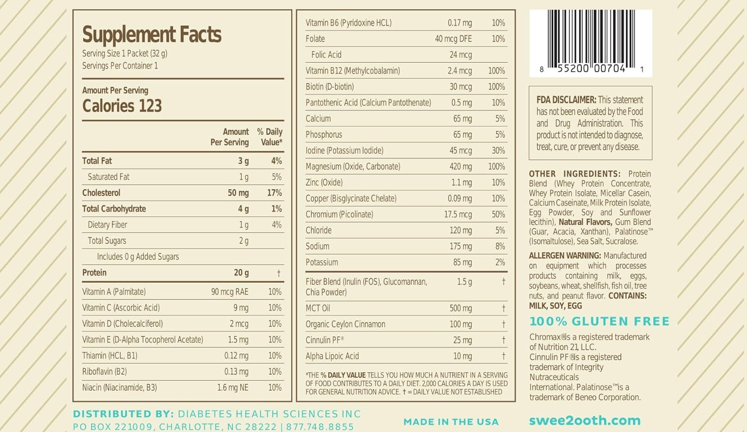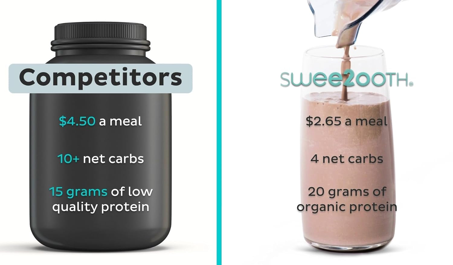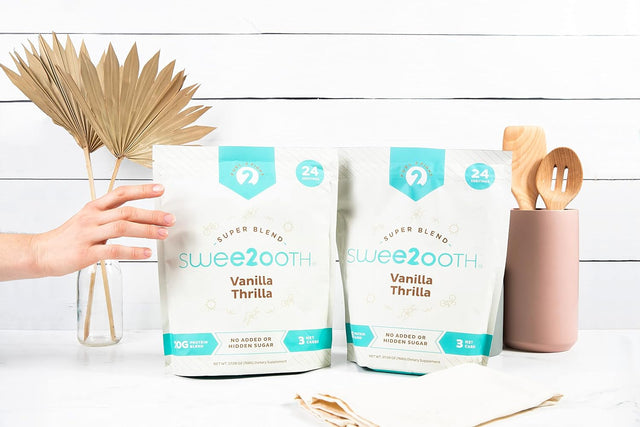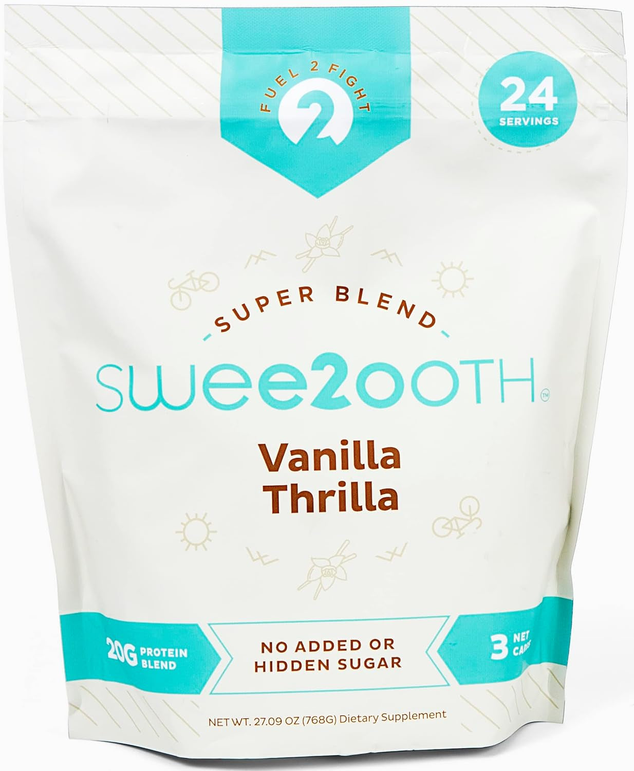 Swee2Ooth Vanilla Thrilla Fit Shake, Protein Super Blend Meal Replacement, 24 Servings, Gluten Free, 20G Protein, Omega 3S, MCT, 22 Vitamins, B12, Biotin, Cinnamon, Cinnulin PF, Chromax