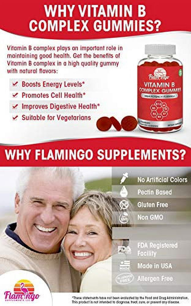 Vitamin B Complex Gummies: Vitamin B12, B7 (Biotin), B6, B3 (Niacin), B5, B8, B9 (Folate). Supports Prenatal- Vegan Diet- Older Adults - Hair Nails - B Complex Vitamin Supplement- Two Month Supply