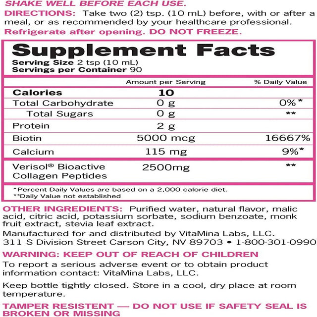 Product Name Zena Liquid Collagen + Biotin, 30 Fluid Ounce