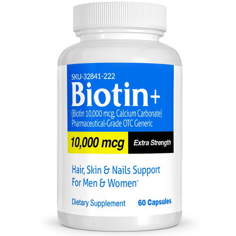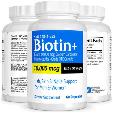Biotin Pharmaceutical Grade OTC Extra Strength Hair Growth, Skin Health, 60 Ct, Vitasource