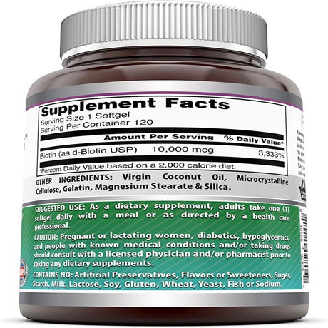 Amazing Formulas Biotin 10000Mcg with Extra Virgin Natural Coconut Oil 120 Softgels