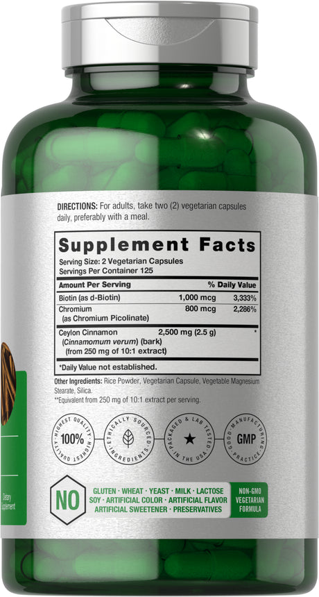 Cinnamon with Chromium & Biotin | 250 Vegetarian Capsules | by Horbaach