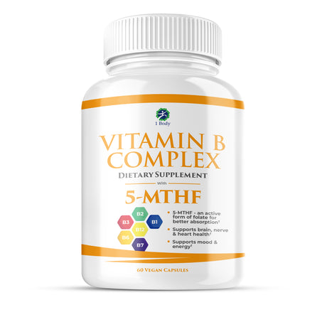 1 Body Vitamin B Complex Supplement 5-MTHF Folate with B1, B2, B5, B6, Methyl B12, Niacin, Biotin