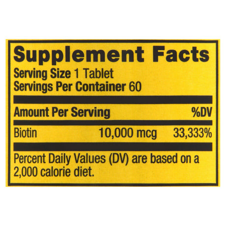 Spring Valley Fast-Dissolve Biotin Dietary Supplement, 10,000 Mcg, 60 Count