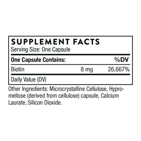 Thorne Biotin 8, Vitamin B7 (Biotin) for Healthy Hair, Nails, and Skin, 60 Capsules