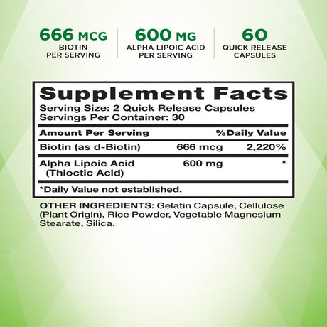 Nature'S Truth Alpha Lipoic Acid plus Biotin Capsules, 300 Mg, 60 Count