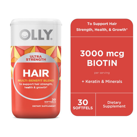 OLLY Ultra Strength Hair Support Softgel, Biotin, Keratin, Minerals, 30 Ct