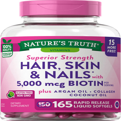 Nature'S Truth Superior Strength Hair, Skin & Nails with 5000 Mcg Biotin Liquid Softgels 165 Ct