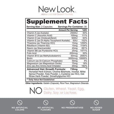 New Look Vitamins for Hair Growth, Skin & Nails | Natural Biotin Supplement for Women & Men 60 Caps