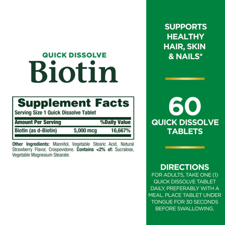 Nature'S Bounty Biotin 5000 Mcg Tablets for Hair, Skin & Nails Support, 60 Ct
