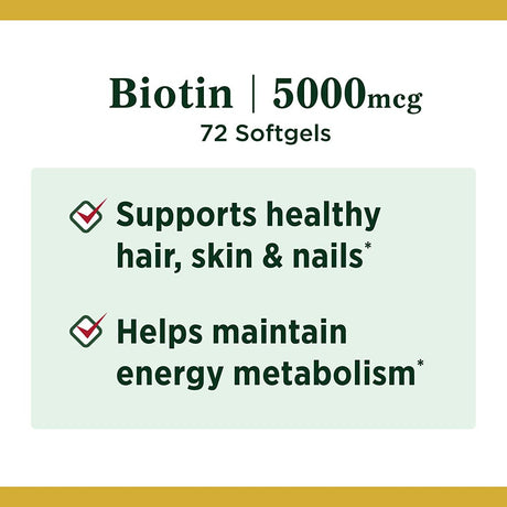 Nature'S Bounty Biotin Softgels, 5000 Mcg, 72 Ct