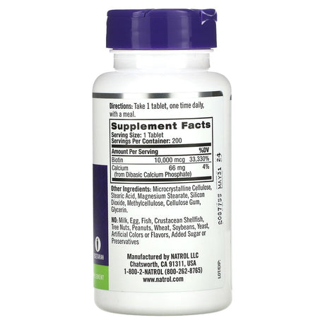 Natrol Biotin, Maximum Strength, 10,000 Mcg, 200 Tablets