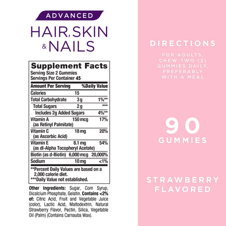 Nature'S Bounty Advanced Hair, Skin and Nails Strawberry Gummies, 6000Mcg Biotin, 90 Ct.