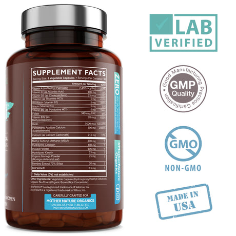 Mother Nature Organics Premium Hair Growth 60Ct with Biotin & Bioperine for Hair, Skin & Nail