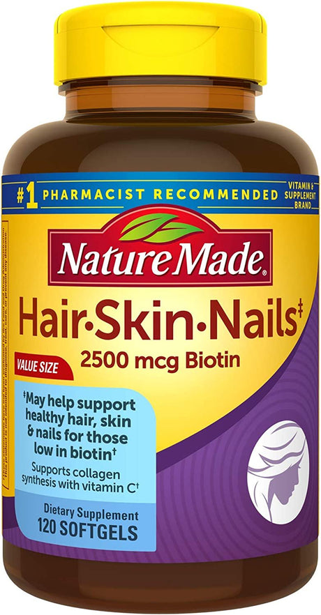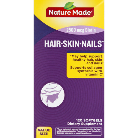 NATURE MADE Hair Skin Nails, 2500 Mcg Biotin, Softgels, 120.0 CT