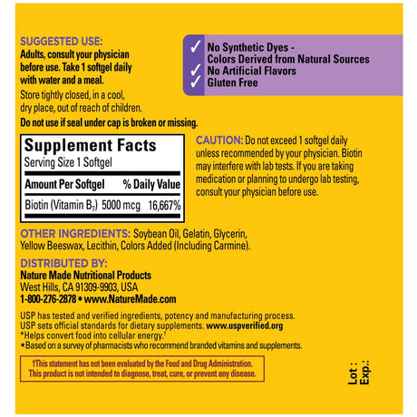 Nature Made Maximum Strength Biotin 5000 Mcg Softgels, 120 Count
