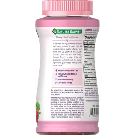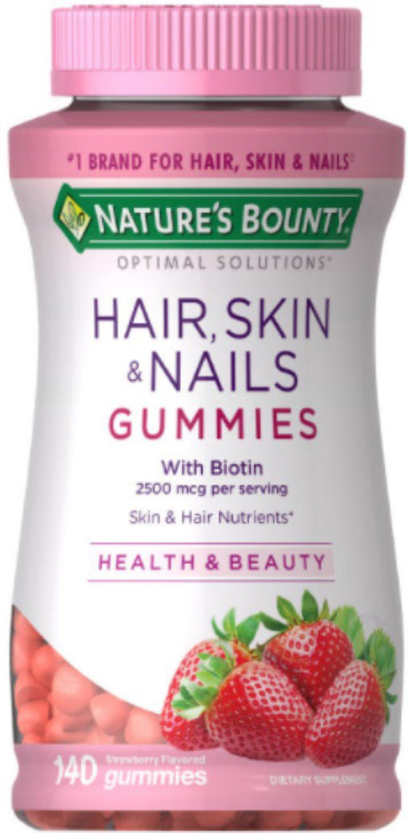 Nature'S Bounty Hair, Skin and Nails Strawberry Gummies, 2500Mcg Biotin, 180 Ct.