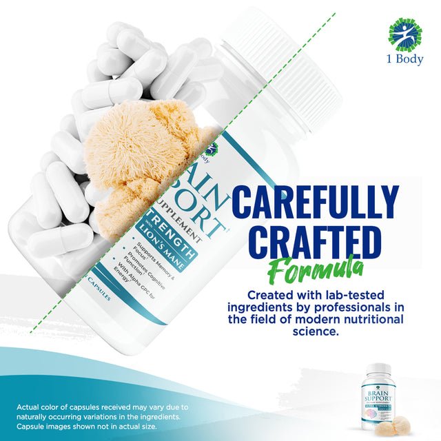 1 Body Brain Memory Support Supplement and Boost Focus Vitamins with Nootropics, Lion’S Mane, 90 Capsules