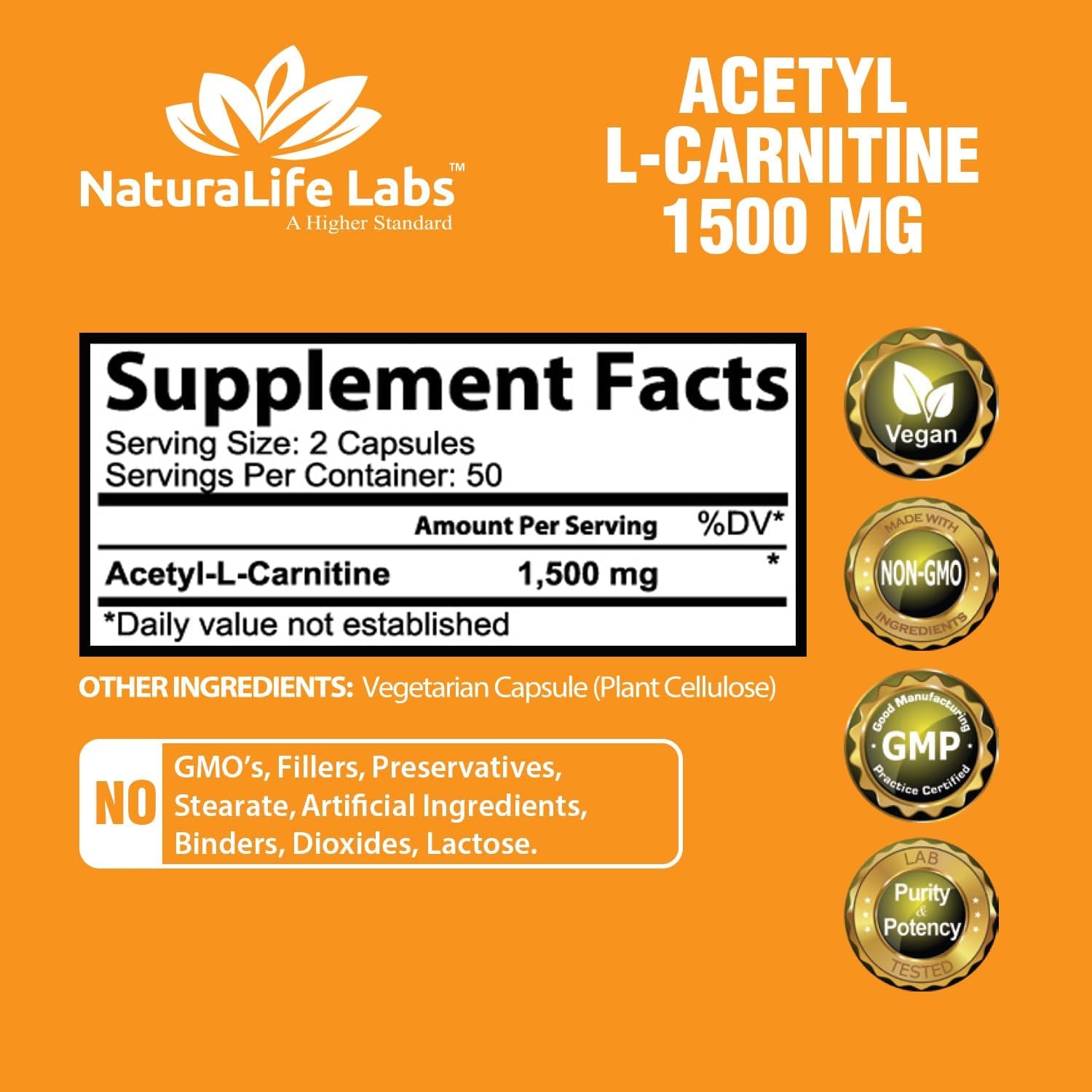 NaturaLife Labs Acetyl L-Carnitine delivers 1500 mg per serving making it the highest MG count available on the market to maximize results.