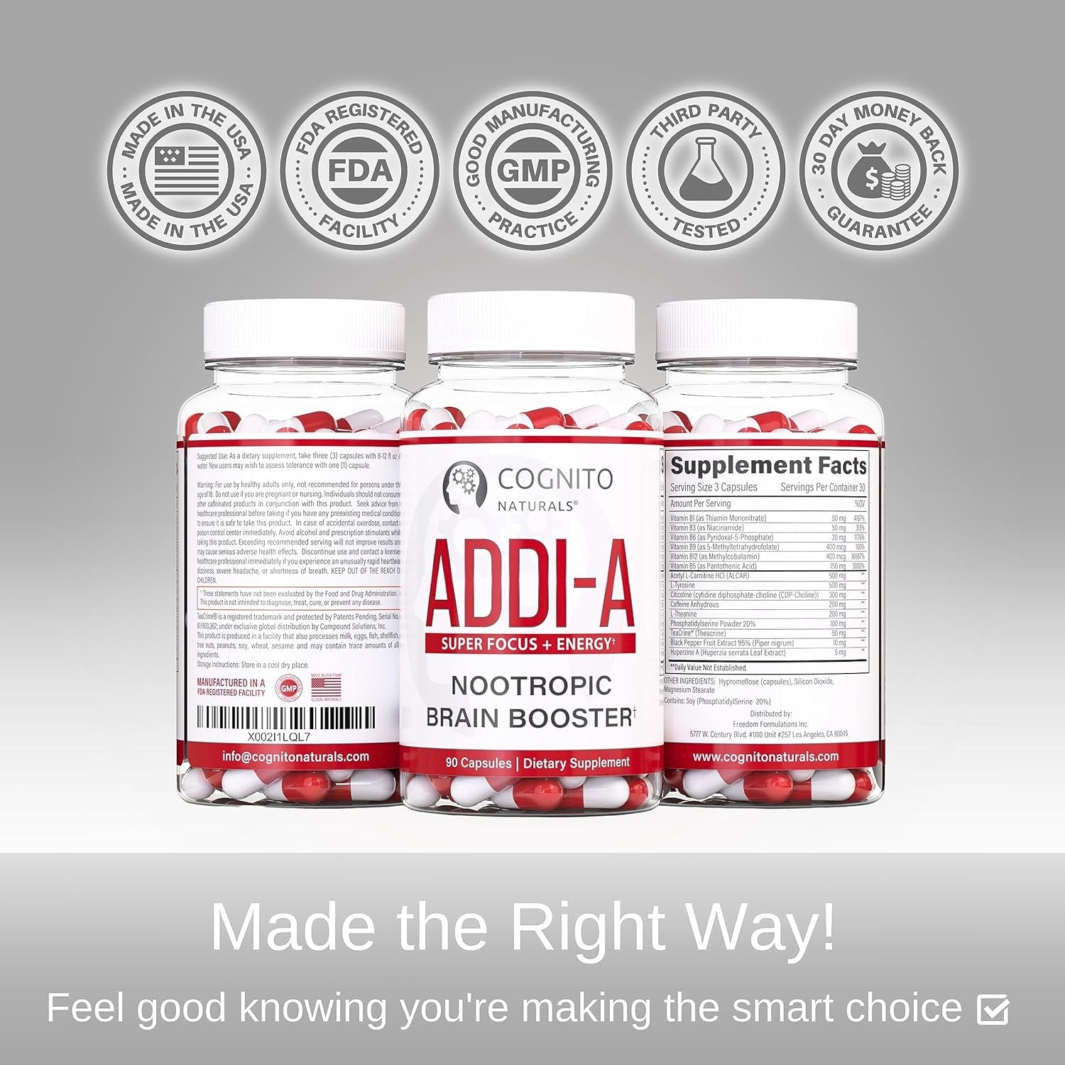- MADE THE RIGHT WAY: ADDI-A is proudly made in the USA from the highest quality all natural ingredients in a GMP (Good Manufacturing Practices) certified facility.