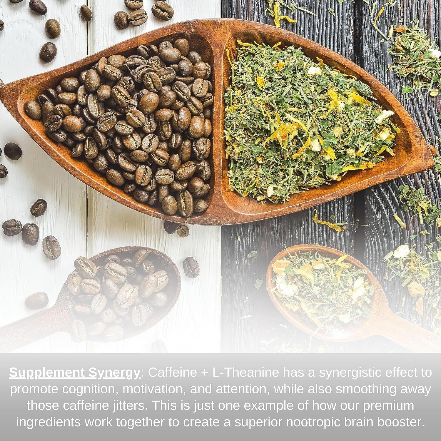 - 200 mg L-Theanine → Focus + Caffeine Synergy