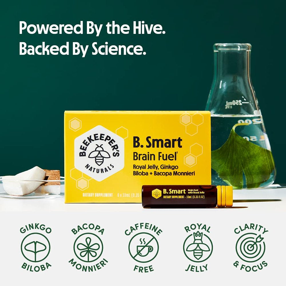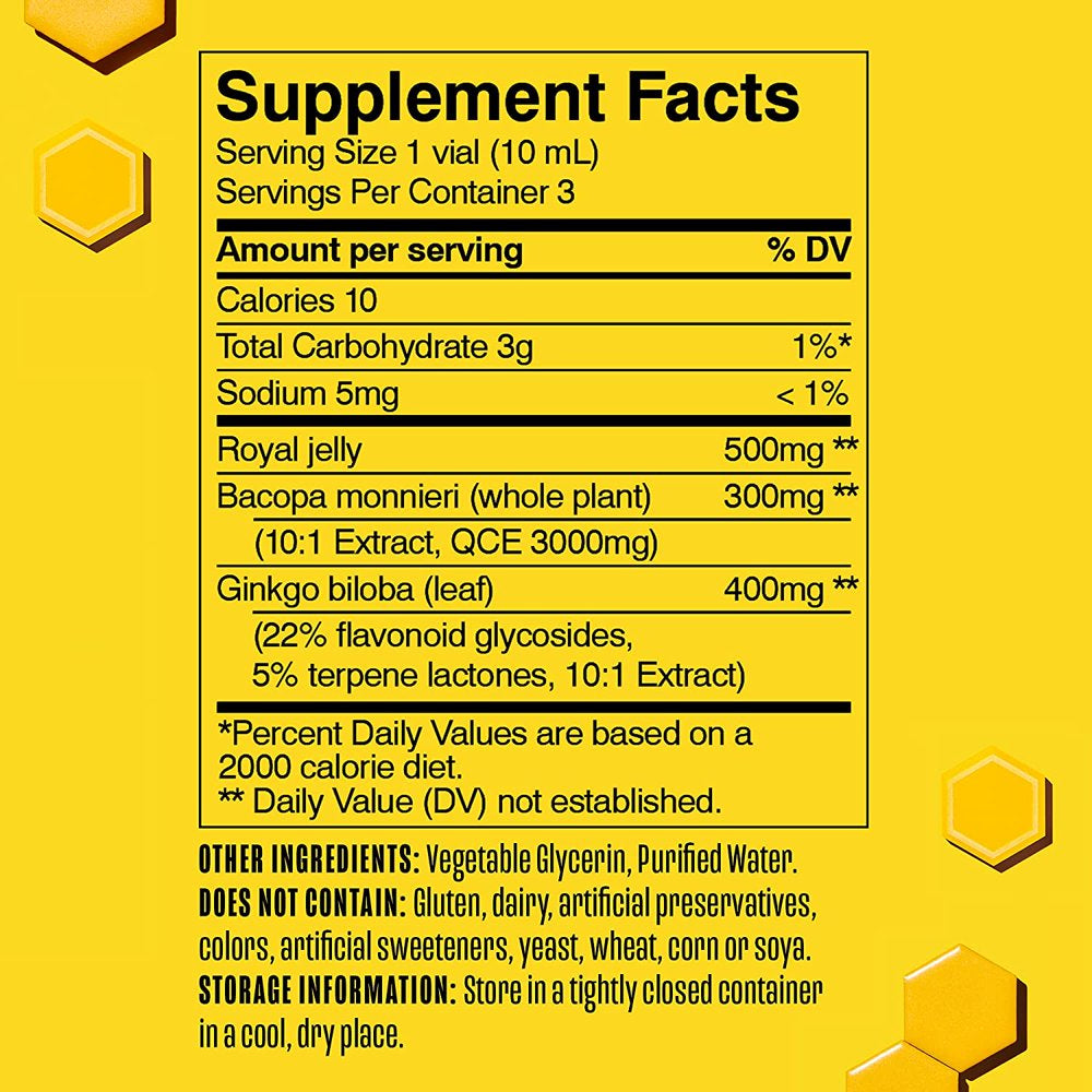 Beekeeper's Naturals B.Smart Brain Fuel, Memory and Focus Liquid Vials, 3-Pack
