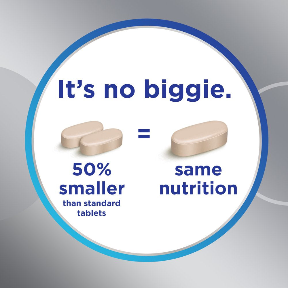 Centrum Minis Silver Multivitamin for Men 50 Plus brings you a tailored multivitamin/multimineral supplement that contains micronutrients to help support full body wellness, complete from A to zinc (1) in a 50 percent smaller tablet. This daily multivitamin for men over 50 contains essential nutrients, including vitamin D and magnesium to help maintain muscle health, B-Vitamins to help promote heart health, zinc and B-Vitamins to help support normal brain function, lutein and vitamins A, C, and E to support healthy eyes (1, 2, 3). Key micronutrients in these vitamin supplements help fill in nutritional gaps to promote overall wellness and vitality (1). This senior multivitamin for men is a verified Non-GMO (4) and gluten free multivitamin supplement for men to fit a variety of dietary preferences. Centrum Silver men's multivitamin tablets feature a smooth coating that makes these multivitamins for seniors easy to swallow. Simply take one of these senior men's vitamins daily to provide your body with key vitamins and minerals. Centrum Silver is the number 1 Doctor recommended multivitamin brand now shown to support memory and cognition in older adults (1). (1) These statements have not been evaluated by the Food and Drug Administration. This product is not intended to diagnose, treat, cure or prevent any disease. (2) Not a replacement for cholesterol-lowering drugs (3) This product is not intended to provide daily intake of lutein. Take with a diet rich in fruits and vegetables (4) Read more about our Non-GMO standard on Centrum.com