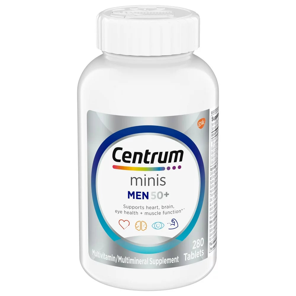 - One 280 count bottle of Centrum Minis Silver Multivitamin for Men 50 Plus, Multivitamin/Multimineral Supplement with Vitamin D3, B-Vitamins and Zinc