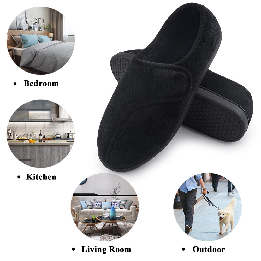 Diabetic Slippers Shoes for Men Arthritis Edema Adjustable Closure Memory Foam House Shoes, Black 7 - 7 / Black is backordered and will ship as soon as it is back in stock.