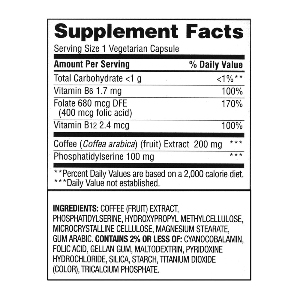 Our Equate Brain Health Advanced 6 Function Formula Dietary Supplement Capsules are formulated to promote concentration, focus, memory, learning, attention, and alertness.* This advanced formula features decaffeinated coffee fruit extract and clinically studied phosphatidylserine, along with vitamins B6, B12, and folic acid. These capsules are vegetarian and contain no gluten, synthetic dyes, artificial flavors, artificial sweeteners, preservatives, or lactose. You can rest assured that Equate Brain Health Advanced 6 Function Formula Dietary Supplement Capsules are produced with strict quality guidelines and are backed by our quality guarantee.