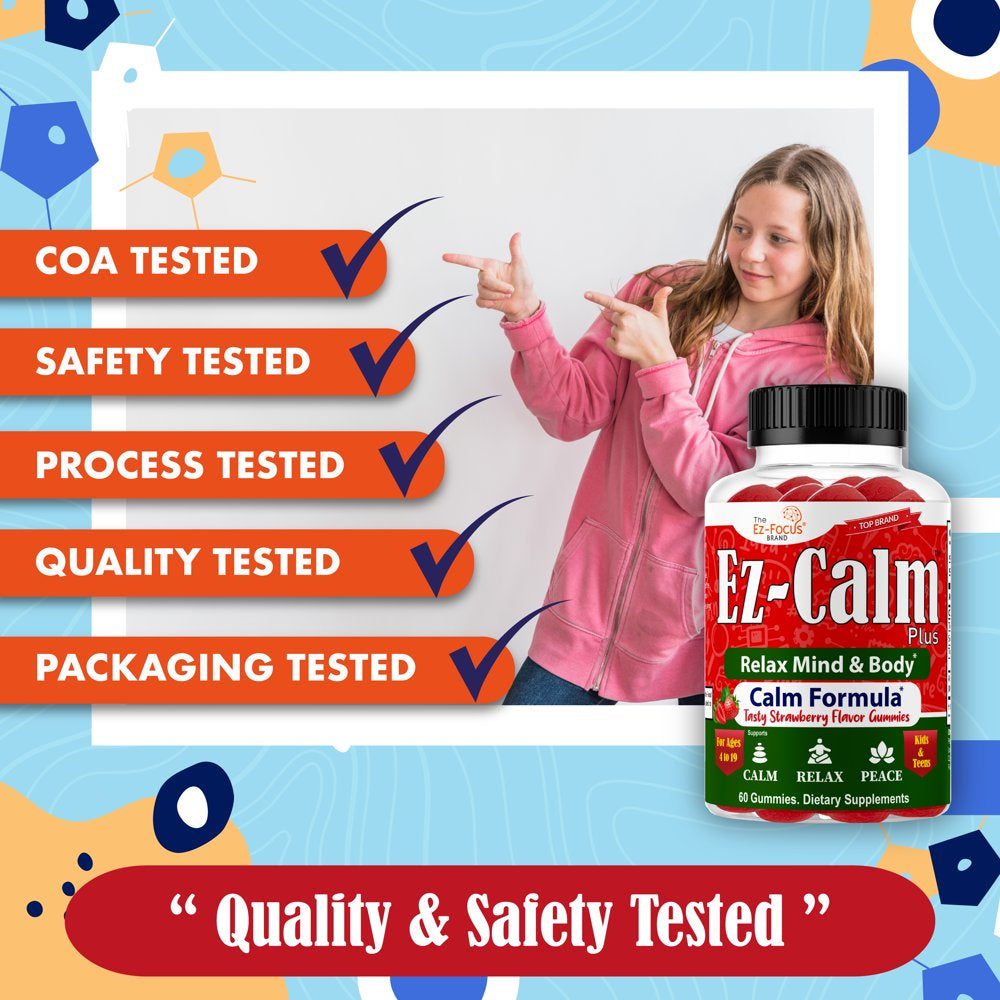 - Non-habit Forming, Non Addictive, Caffeine Free; Non Stimulant: We are committed to providing the quality products for children's health. Ez-Calm gummies for kids are manufactured in a GMP-certified facility, ensuring safety and purity.