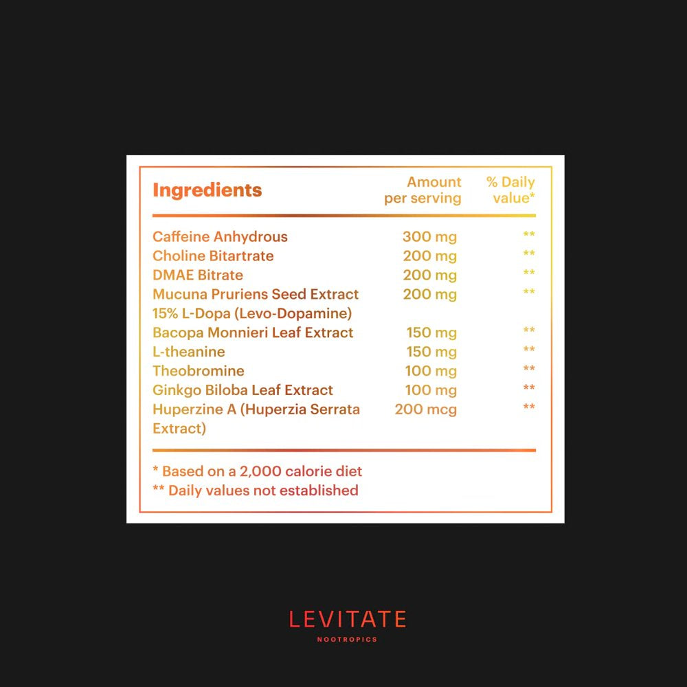- GOODBYE TO DISTRACTIONS: Levitate Nootropics Focus will help you to fight mental fog and produce feelings of mental clarity and cognitive ability.