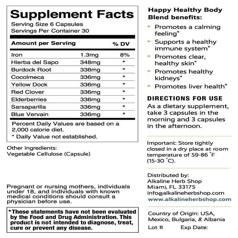 Promotes a calming feeling* Supports a healthy immune system* Promotes clear, healthy skin* Promotes healthy kidneys* Promotes liver health* Supports prostate health in healthy men* Each bag contains 180 vegetable capsules and is made from wildcrafted and organic herbs. Ingredients include Red Clover, Cocolmeca, Sarsaparilla, Yellow Dock, Elderberry, Blue Vervain, Burdock Root and Sapo. Red Clover is supportive for menopausal women.* This makes sense since the herb contains phytochemicals called isoflavones. But this herb isn’t just for women. It also helps support prostate health in healthy men.* Cocolmeca is a Spanish name for a jungle plant (smilax) that means “vine for caregiving.” It contains biochemicals called saponins that may have beneficial effects for the skin.* Sarsaparilla contains biochemicals called saponins that may promote clear, healthy skin.* Elderberries are described in the writings of Hippocrates and Pliny as excellent for health support.* Yellowdock helps to promote proper digestive health.* Blue Vervain is a nervine herb that may help when you’re feeling overwhelmed and stressed, and just want to relax. It promotes a calming feeling.* Burdock Root helps promote urinary tract health and healthy liver function.* Promotes clear, healthy skin.* Sapo or Hierba del Sapo is a Mexican plant that grows in humid regions. It helps support healthy kidneys and healthy blood.* Pregnant or nursing mothers, individuals under 18, and individuals with known medical conditions should consult a physician before use. *These statements have not been evaluated by the Food and Drug Administration. This product is not intended to diagnose, treat, cure, or prevent any disease.
