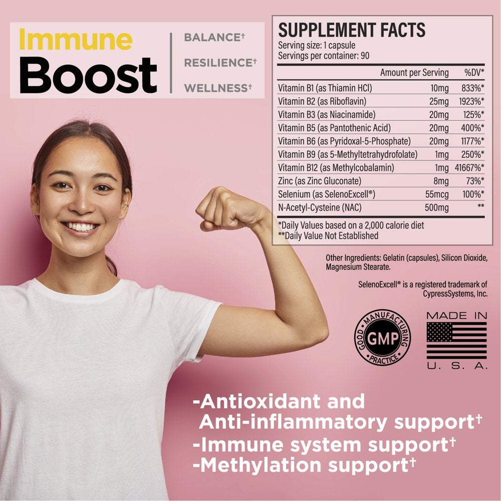 Healthybrain Immune Boost 90 Days Vitamin B1, B2, B3, B5, B6, B9, B12, Zinc, Selenium, N-Acetyl-Cysteine (NAC)