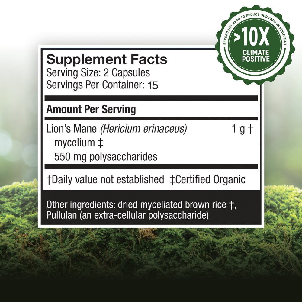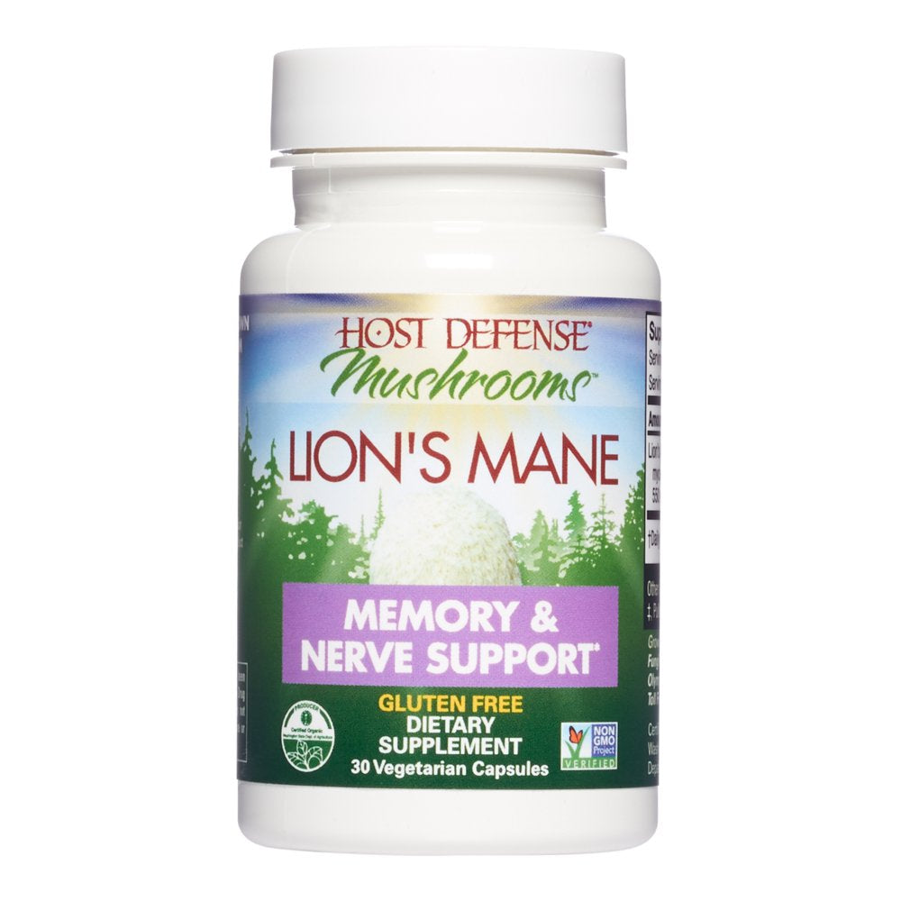 Host Defense, Lion'S Mane Capsules, Promotes Mental Clarity, Focus and Memory, Daily Mushroom Supplement, Vegan, Organic, 30 Capsules (15 Servings)
