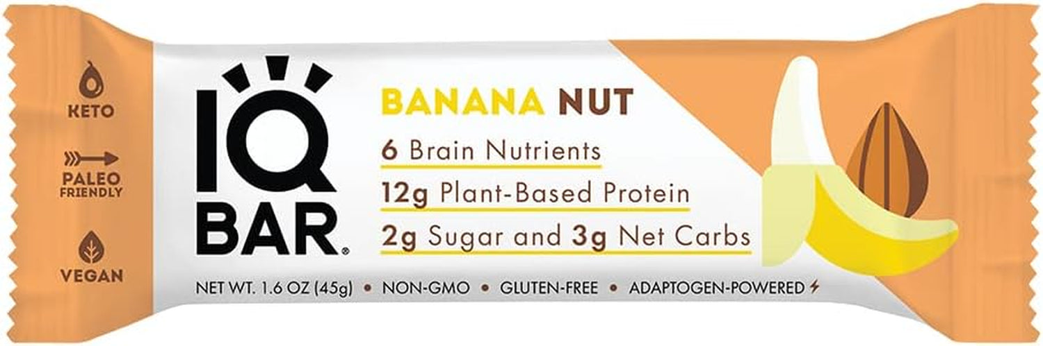 IQBAR Brain and Body Keto Protein Bar - Banana Nut Keto Bar - Energy Bar - Low Carb Protein Bar - High Fiber Vegan Bar and Low Sugar Meal Replacement Bar - Vegan Snack