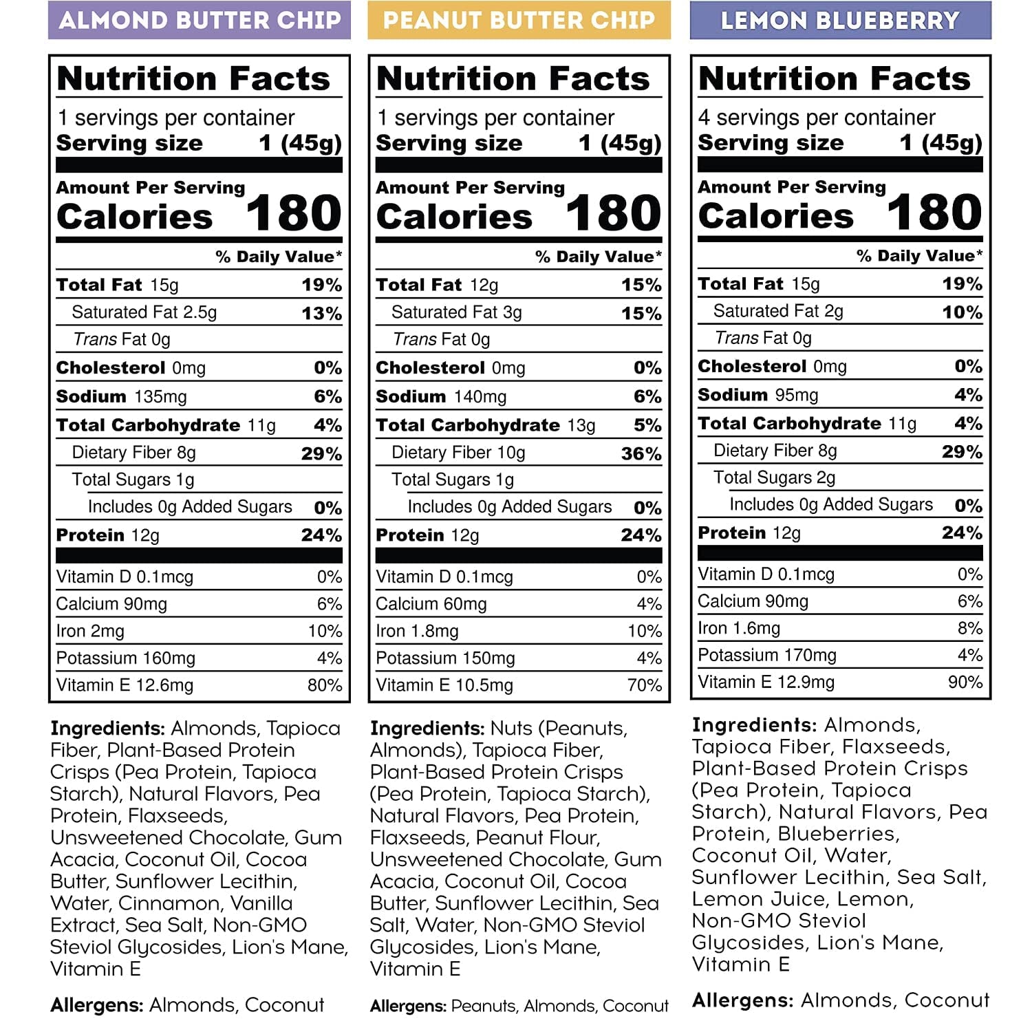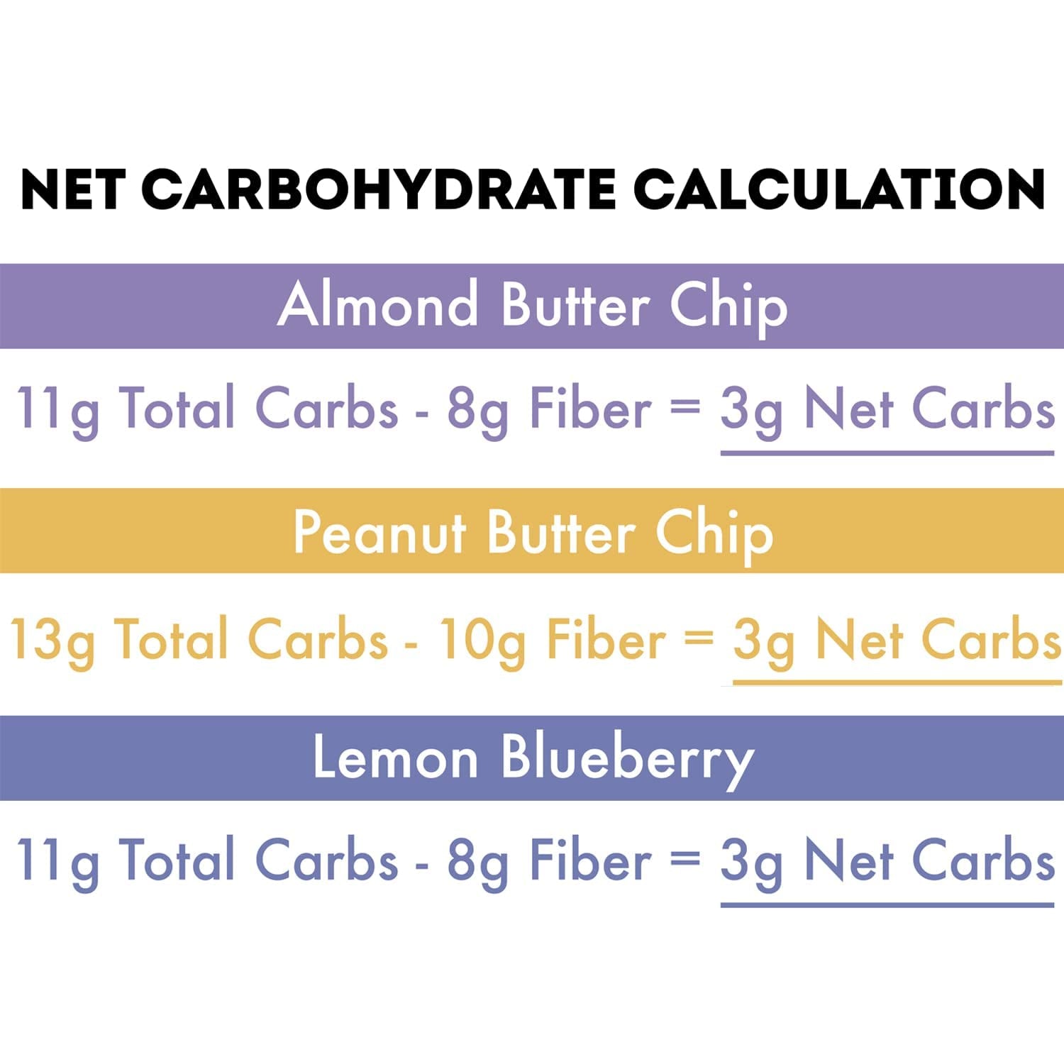 IQBAR Brain and Body Keto Protein Bars 12-Count Almond Butter Chip, Peanut Butter Chip & Lemon Blueberry Keto Bars - Low Carb Protein Bars, High-Fiber Vegan Bars, Low Sugar Meal Replacement Bars