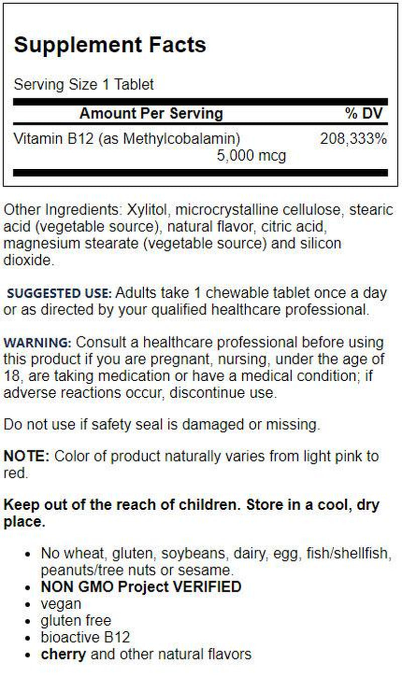 Jarrow Formulas Methyl B12 (Methylcobalamin) Cherry, Supports Brain Cells, 5000 Mcg, 60 Lozenges is backordered and will ship as soon as it is back in stock.