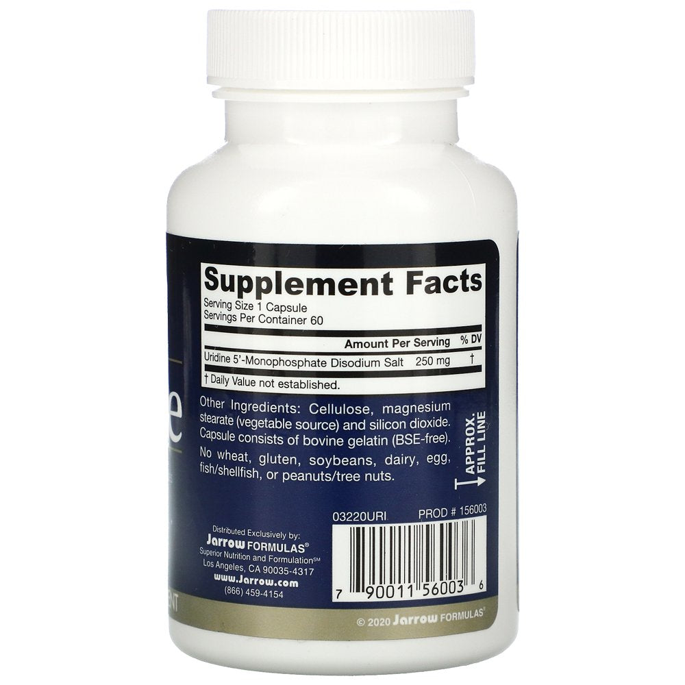 Jarrow Formulas Uridine, Supports Brain, Memory, Liver Health, 250 Mg, 60 Caps