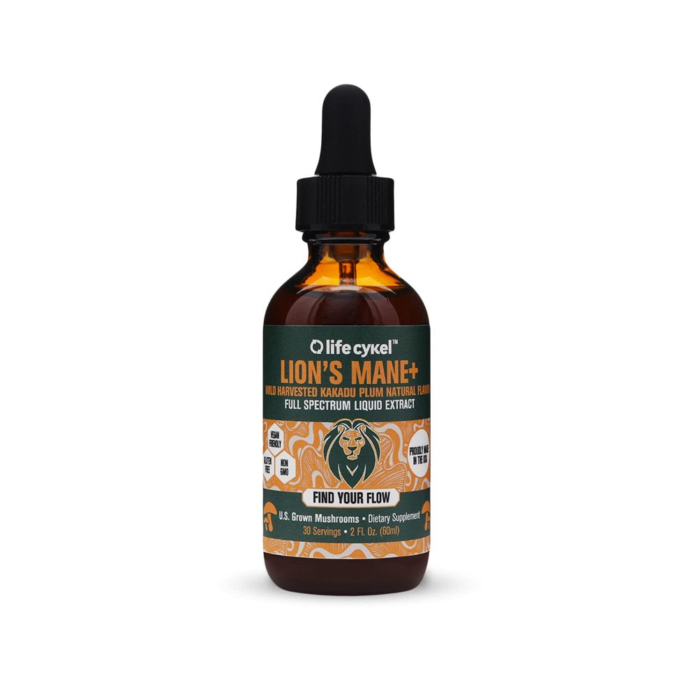 Life Cykel Lion'S Mane Mushroom Extract W/Kakadu Plum- Memory Focus Clarity REM Sleep- 100% Organic Mushrooms Brain Booster Nootropic Brain Supplement Focus Supplement Made in the US, 2Oz(30 Servings)