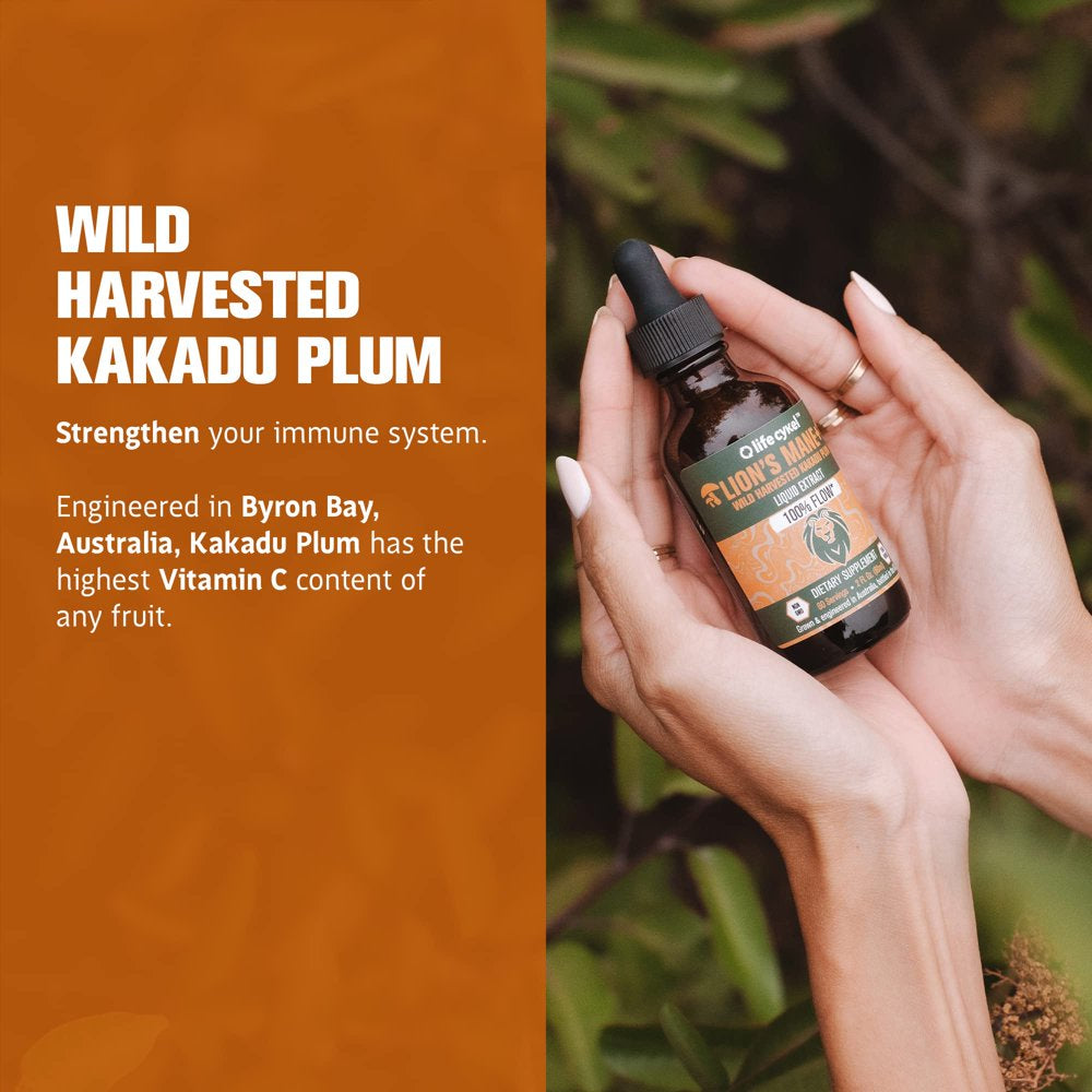 - ANTIOXIDANTS & VITAMIN C: Blended with wild-harvested Kakadu Plum, this double liquid extract mushroom supplement is packed with antioxidants & vitamin C. This nootropic brain booster is perfect for AM & PM consumption.