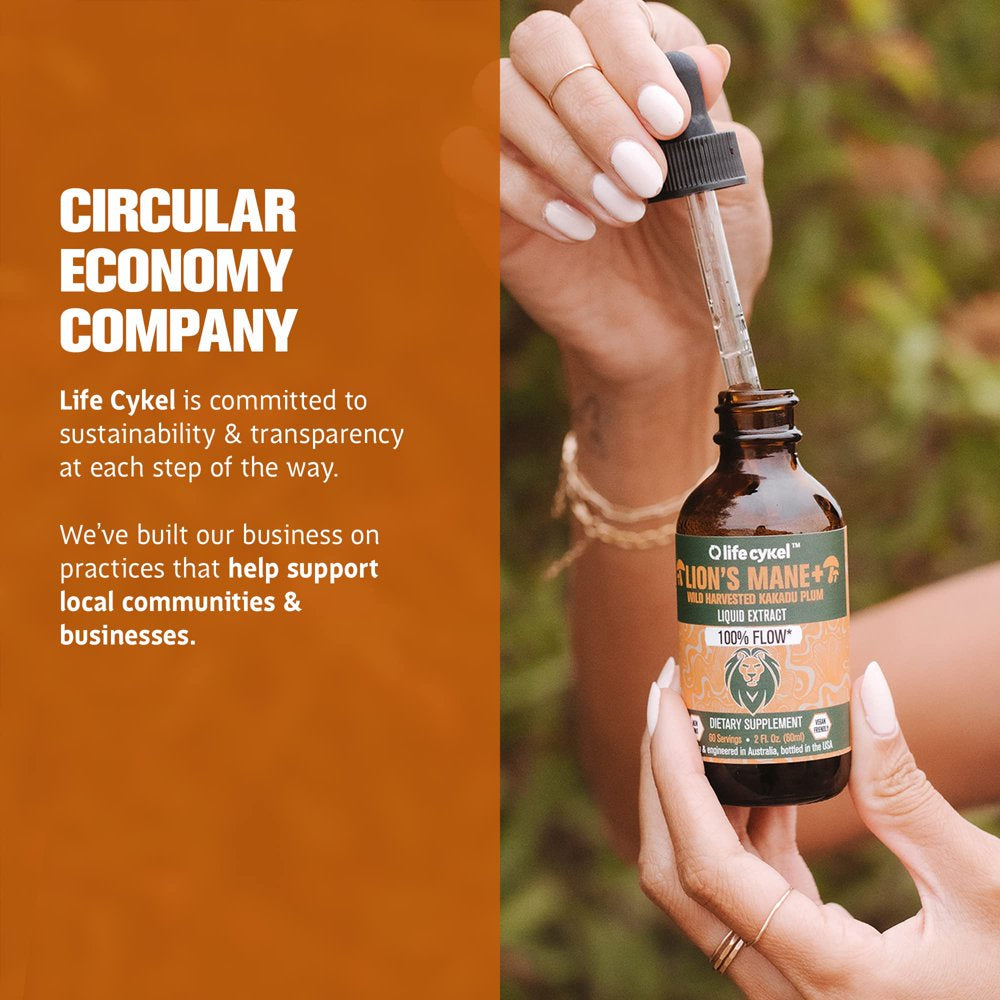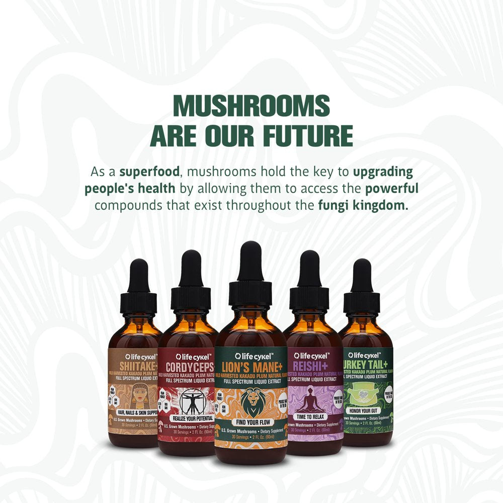 - ABOUT LIFE CYKEL: Made in the USA with 100% organic mushrooms. Third-party tested, all natural, full-spectrum, adaptogenic, non-GMO, gluten free, cruelty free, palm oil free, low GI, sugar free, vegan & sustainable.