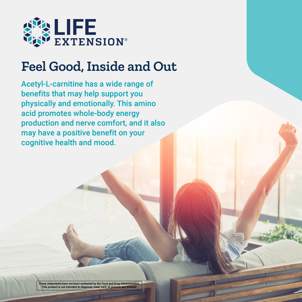 Life Extension Acetyl-L-Carnitine Arginate - for Cell Energy & Brain Health Support - Gluten-Free, Non-Gmo - 90 Capsules