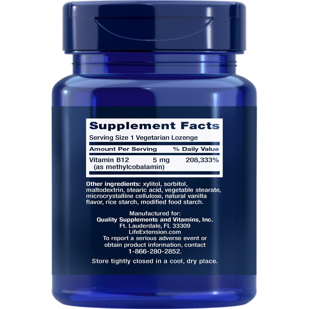 Life Extension Vitamin B12 Methylcobalamin, 5 Mg - Dissolvable Vitamin B Supplement for Nerve, Brain Health & Energy - Gluten-Free, Non-Gmo - 60 Vegetarian Lozenges