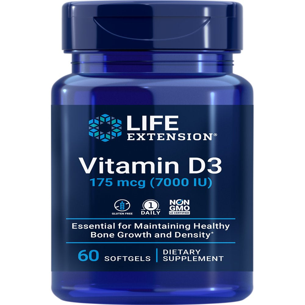 Life Extension Vitamin D3 175 Mcg (7000 IU), Immune System Support, Bone Health, Brain Performance, Gluten-Free, Non-Gmo, Once Daily, Two-Month Supply, 60 Softgels